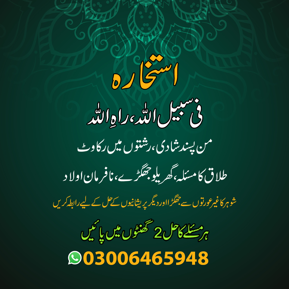 Prof. Zafar is running this website with the name of madani channel istikhara just for the help of peoples. Anyone can contact for love and relationship solution, husband wife dispute solution, divorce solution, ex love back.